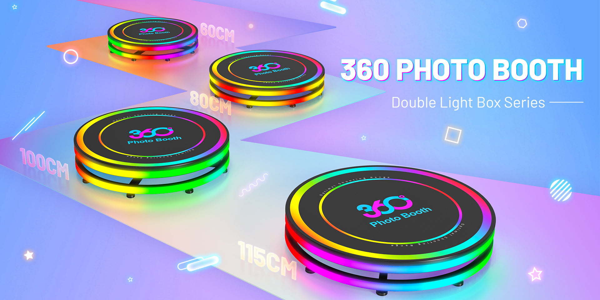 Wir bieten 360-Grad-Fotoautomaten in verschiedenen Größen an, um den unterschiedlichen Anforderungen von Gruppen gerecht zu werden. Für den Verleih sind die Größen 80 cm, 100 cm oder 115 cm eine gute Wahl – sie sind beliebt und eignen sich für die meisten Veranstaltungen.