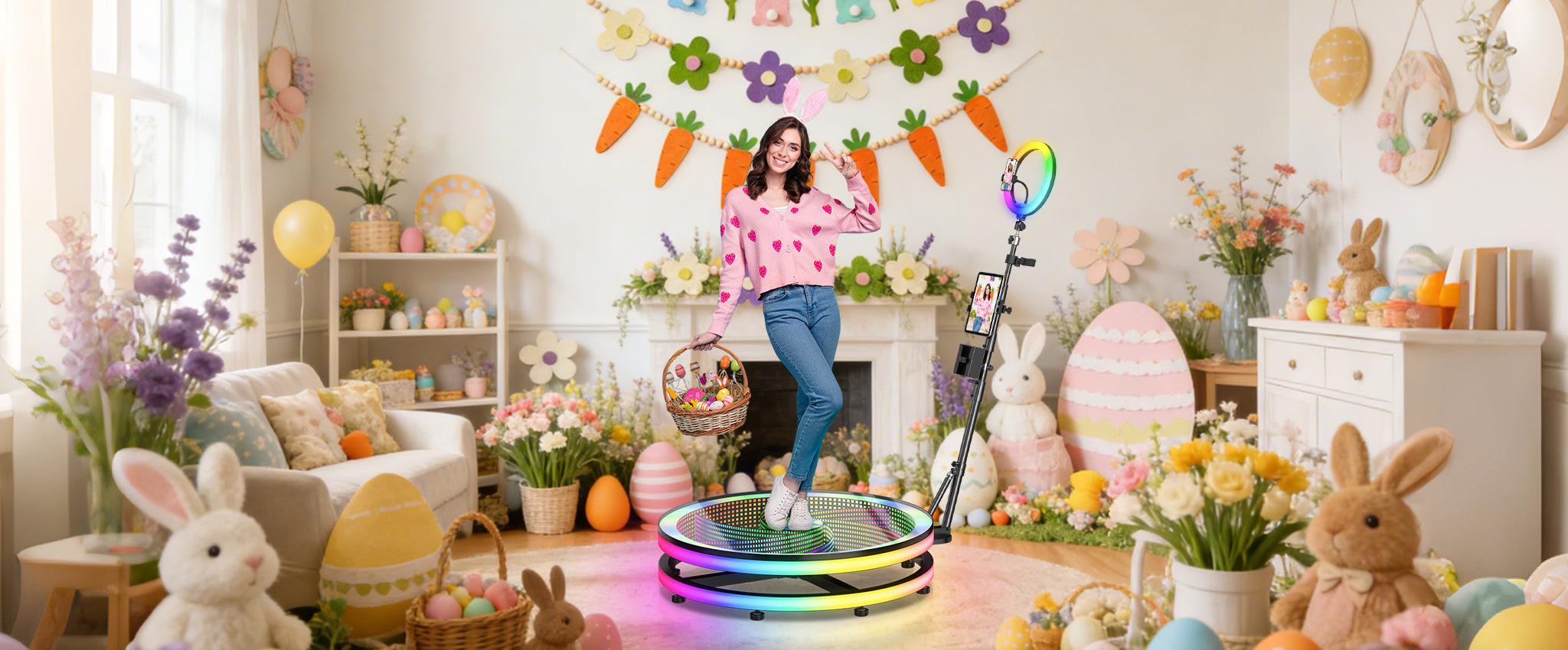 Machen Sie einzigartige Aufnahmen aus der Untersicht und lassen Sie alle mitmachen! Keine Sorge, wenn Ihre Gäste Kinder oder Haustiere haben – auch sie können problemlos am 360-Grad-Spaß teilnehmen!